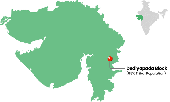 For generations, Adivasi (tribal) communities in Gujarat’s Narmada district have lived in harmony with the forests, their identity deeply tied to the land. The community still remain trapped in cycles of poverty, alcoholism, early marriage, suicides, and teenage pregnancies—disruptions that have stalled their upward mobility and left children especially vulnerable.
